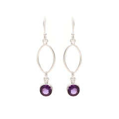 These delicate silver earrings are classy and festive. The round amethyst gemstone at the bottom of each earring, lends it a quiet charm.92.5 sterling silver stamp on each piece gives the product a stamp of quality.
