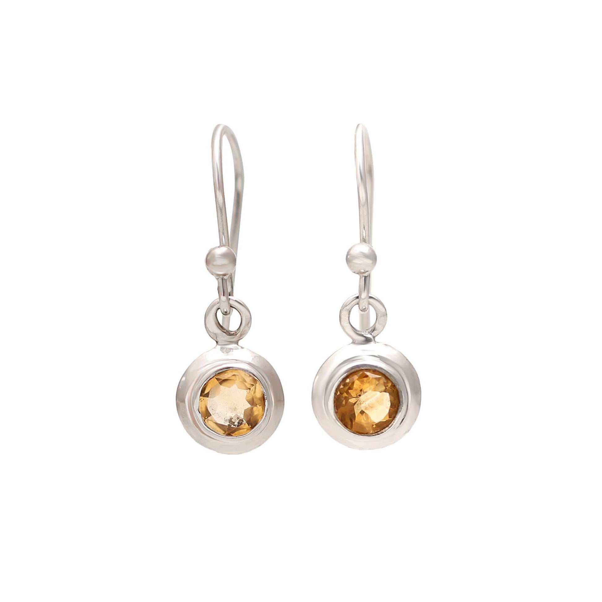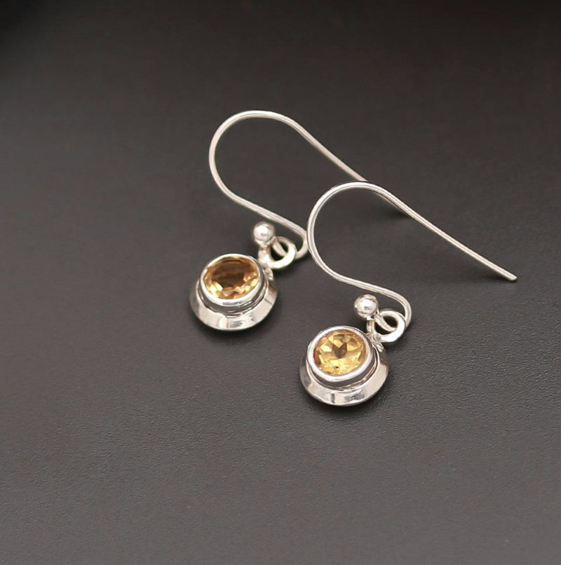 These round Citrine silver earrings dangle beautifully, adding elegance to your everyday look.They will be a all time favorite.92.5 sterling silver stamp on each piece gives the product a stamp of quality.
