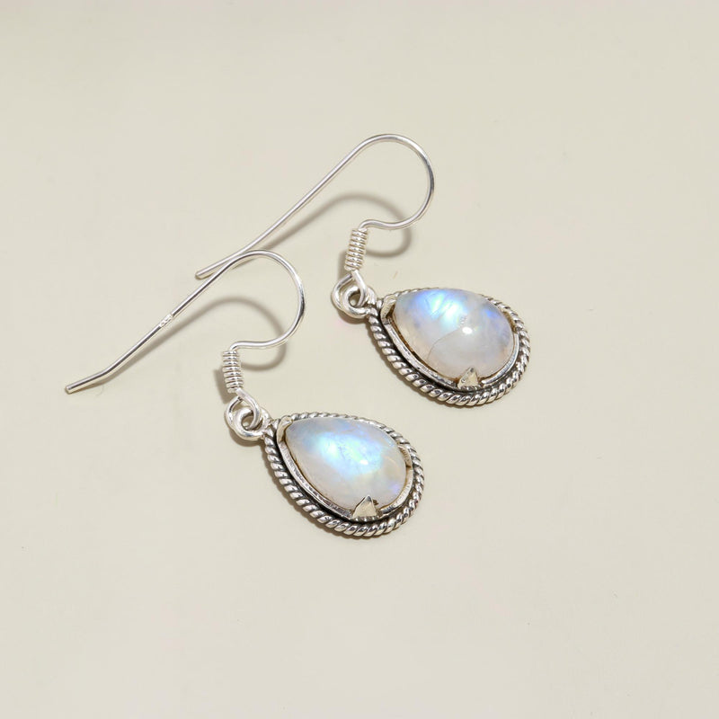 Moonstone Pear Silver Earrings. .