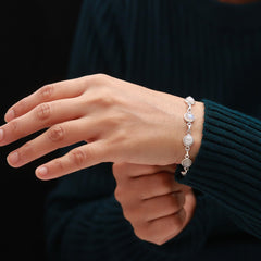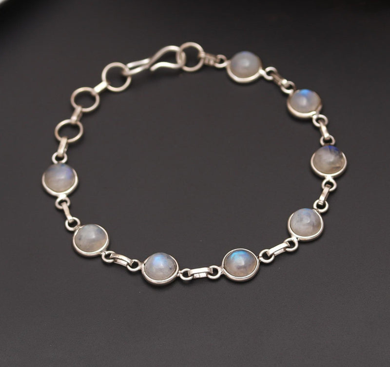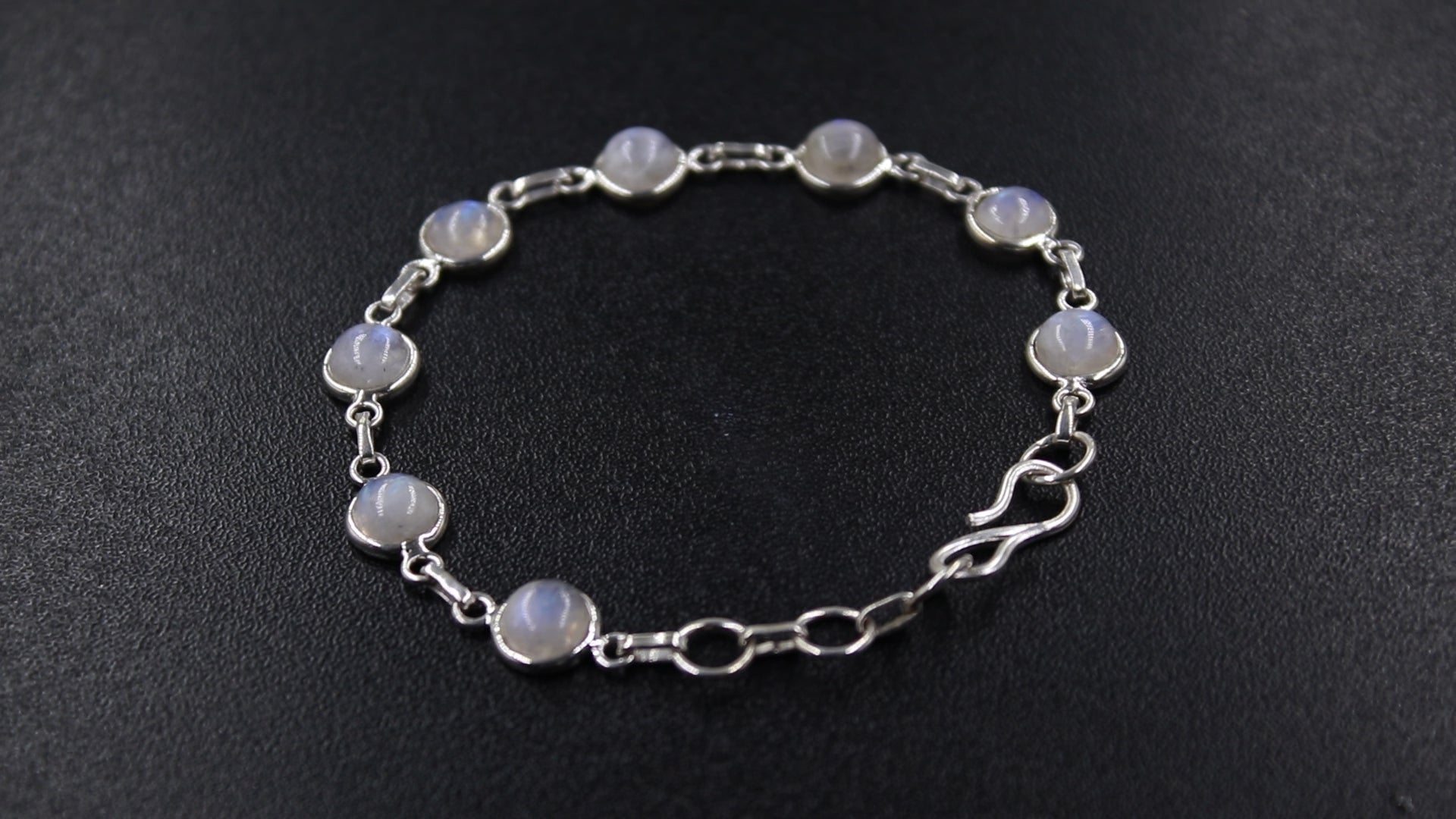This sterling silver moonstone bracelet is a classic style. It can be worn for a formal occasion. Adds to your timeless style and grace.92.5 sterling silver stamp on each piece gives the product a stamp of quality.