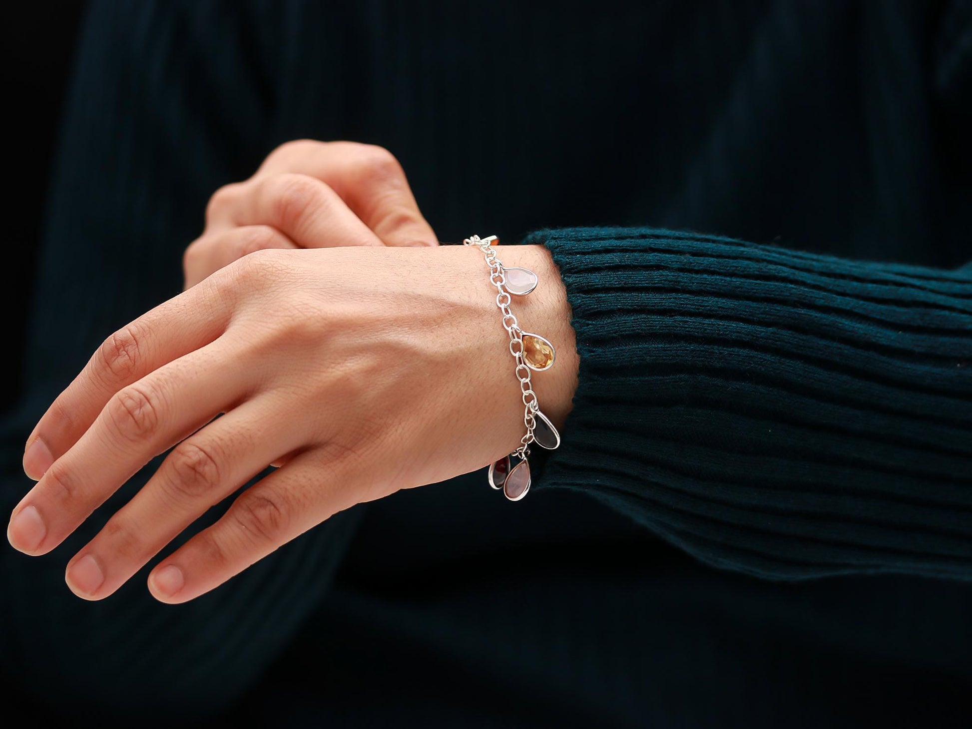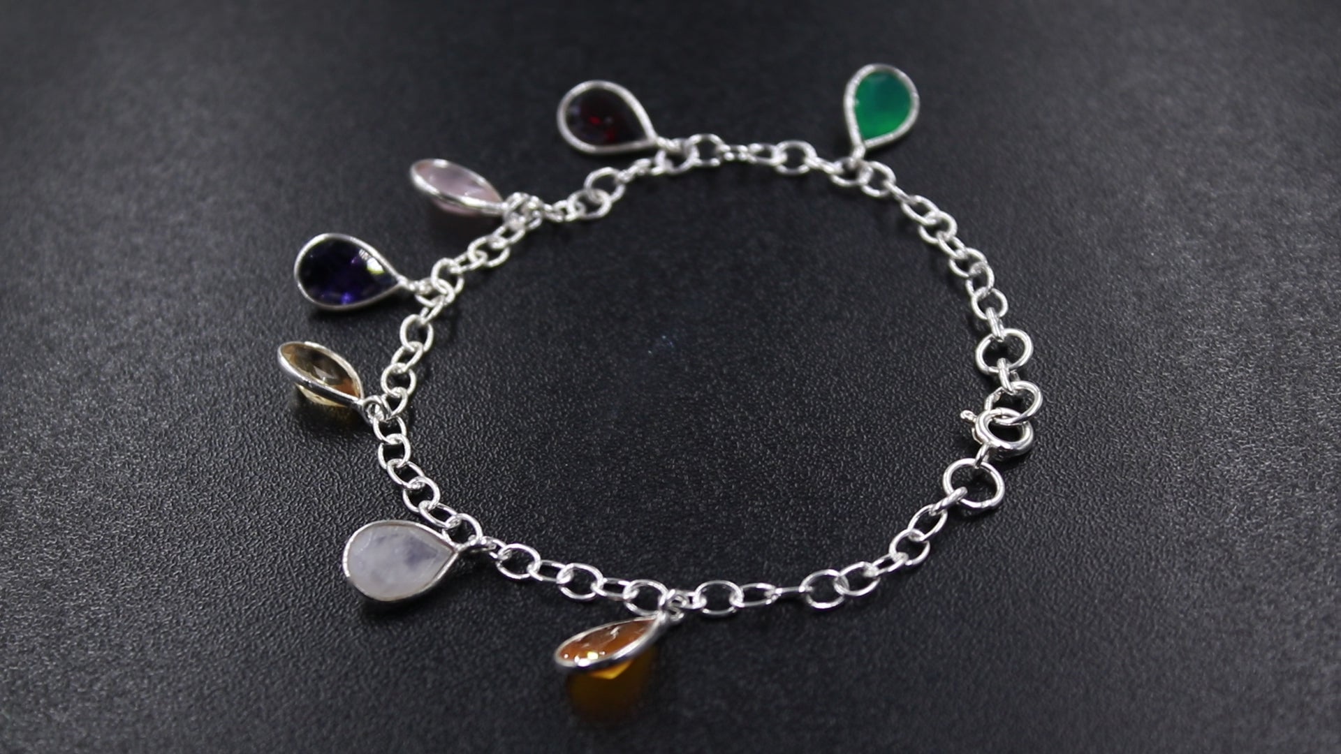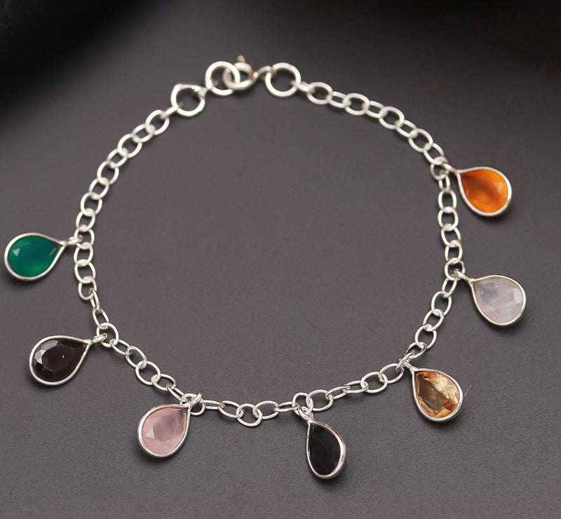 A fun and trendy mix stones silver bracelet .It brings a pop of colour to lift any casual to formal outfit92.5 sterling silver stamp on each piece gives the product a stamp of quality..