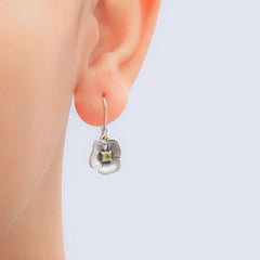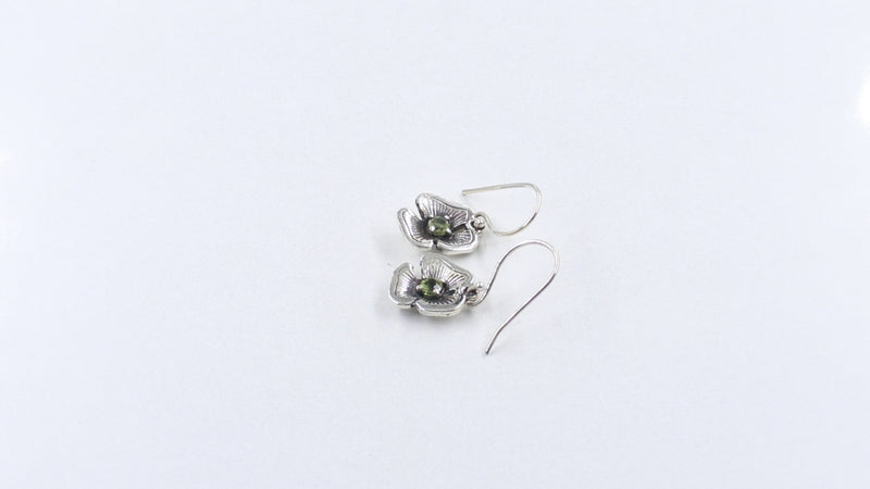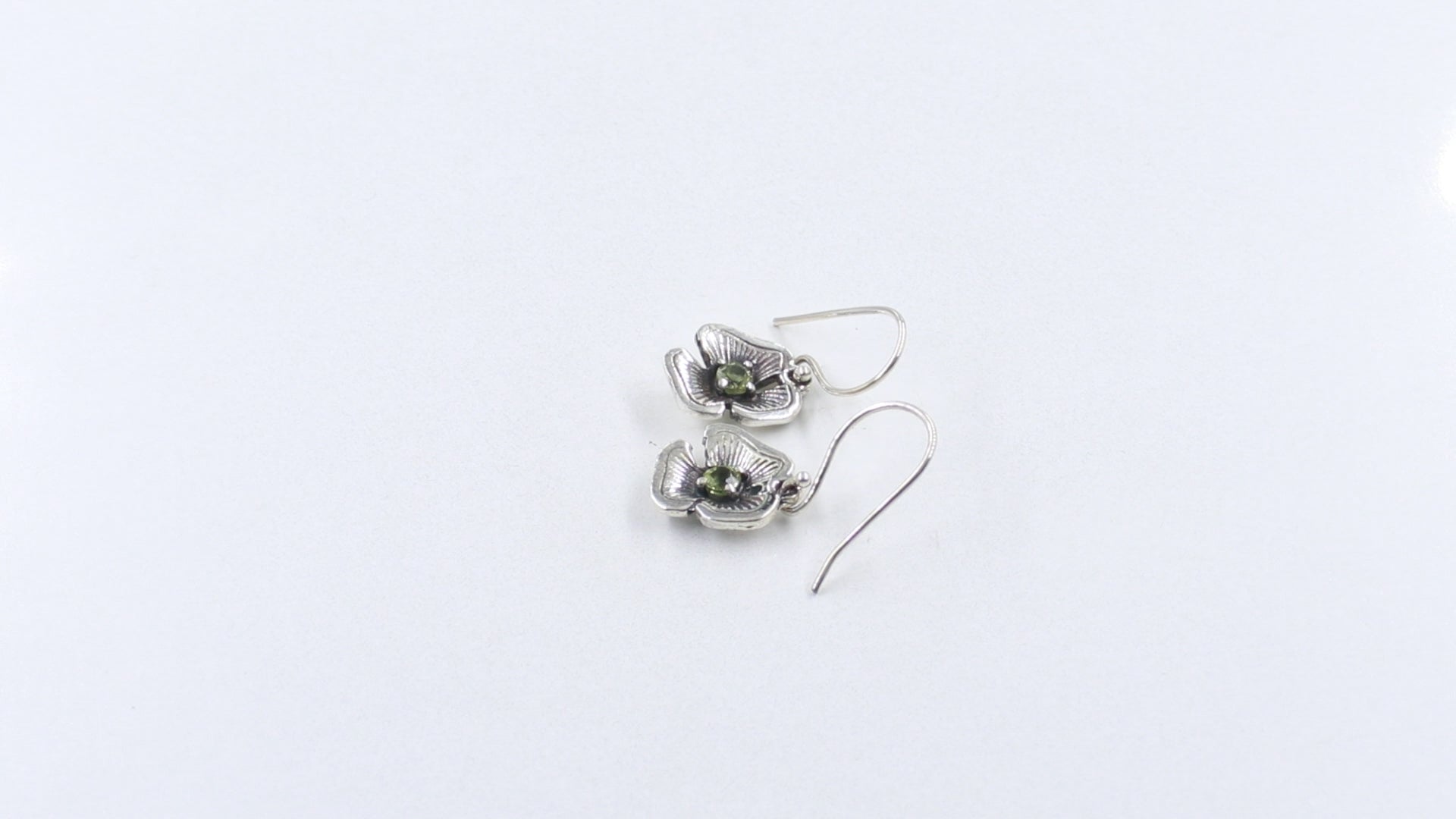 Round Peridot centre floral drop silver earrings. Perfect design in oxidised silver which complements the modern woman for minimal look. 92.5 sterling silver stamp on each piece gives the product a stamp of quality.