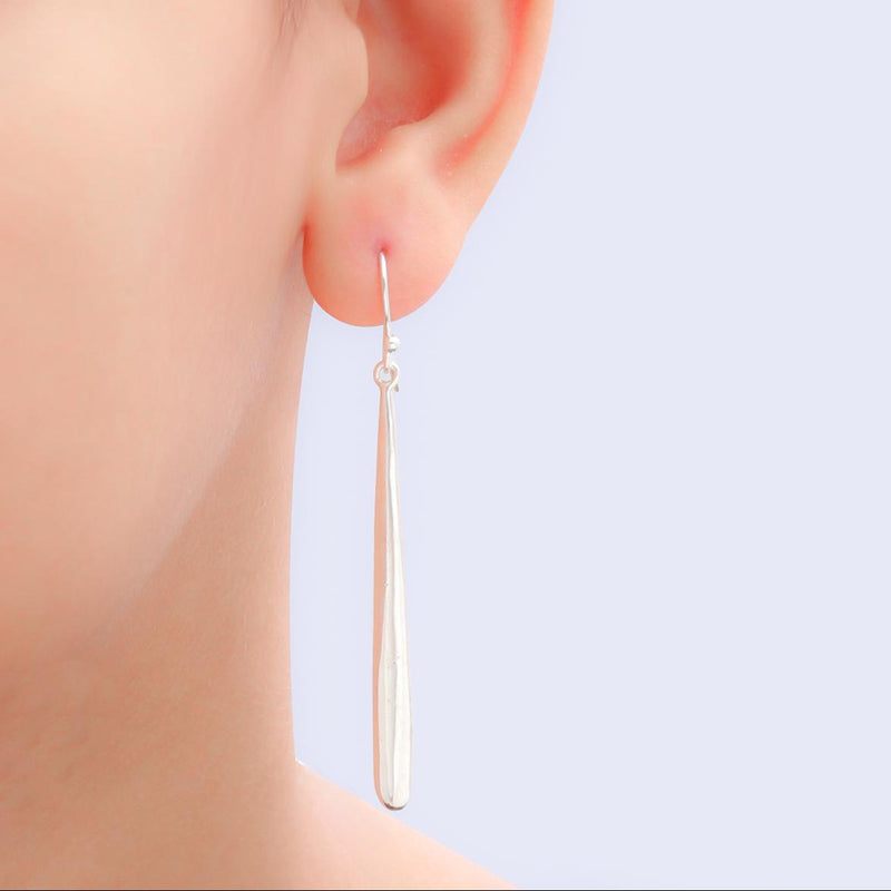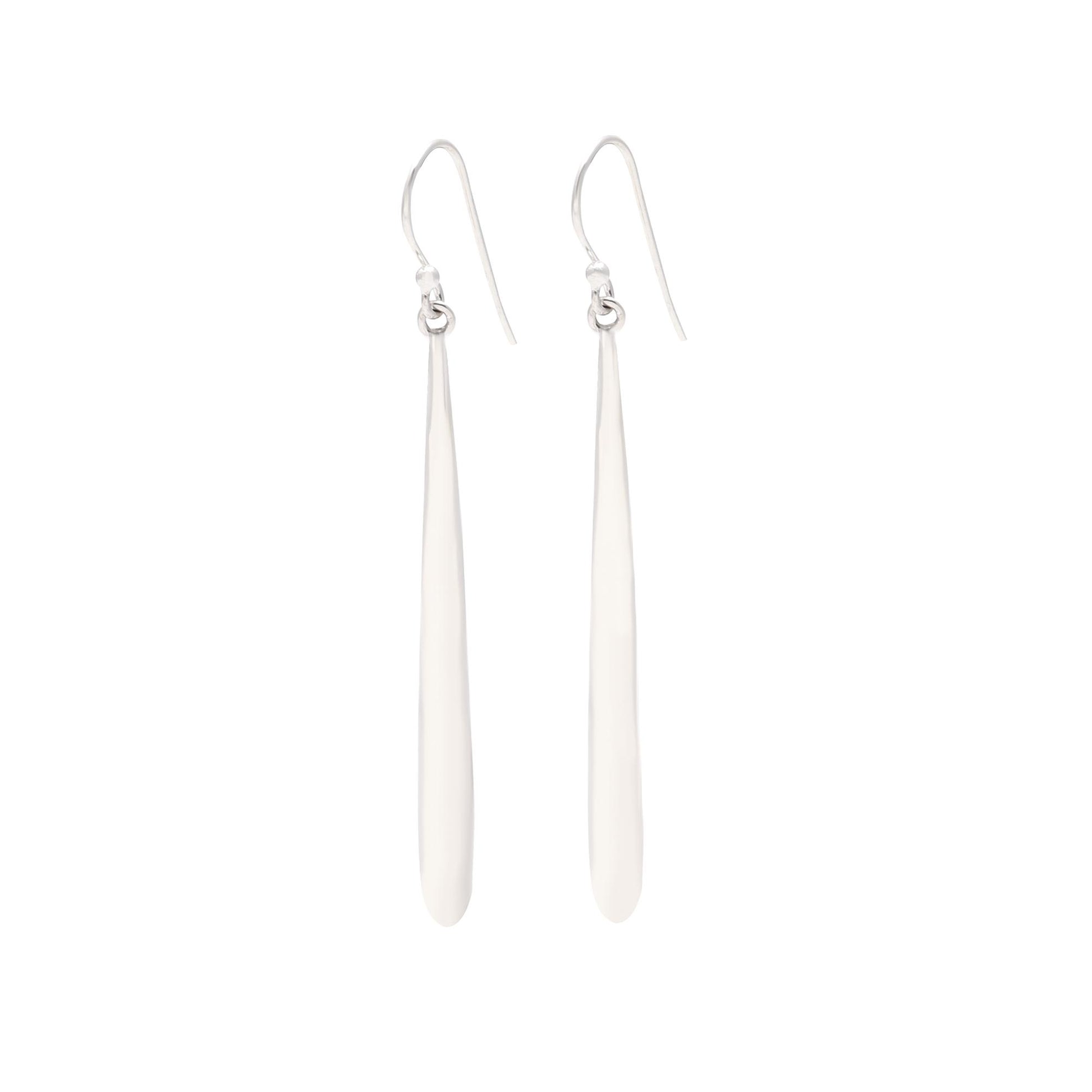These elongated silver tear drop earrings make for a sophisticated look. They standout and make a quiet statement. 92.5 sterling silver stamp on each piece gives the product a stamp of quality.