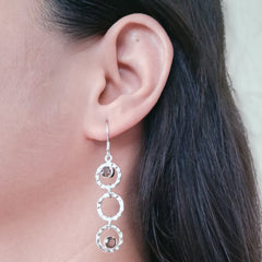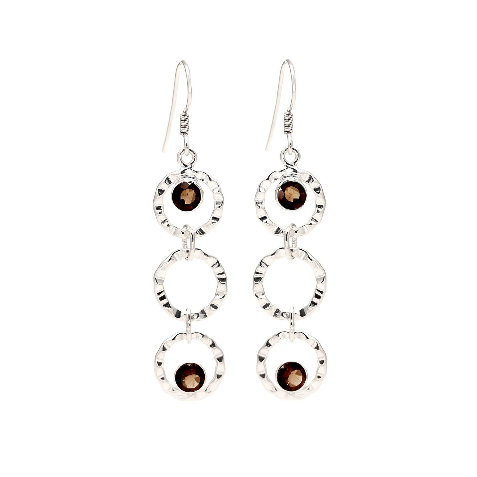 These Round Smoky Topaz earrings encircled with wavy textured silver rings, make a chic style statement.They are sure to become a cherished favorite. 92.5 sterling silver stamp on each piece gives the product a stamp of quality.