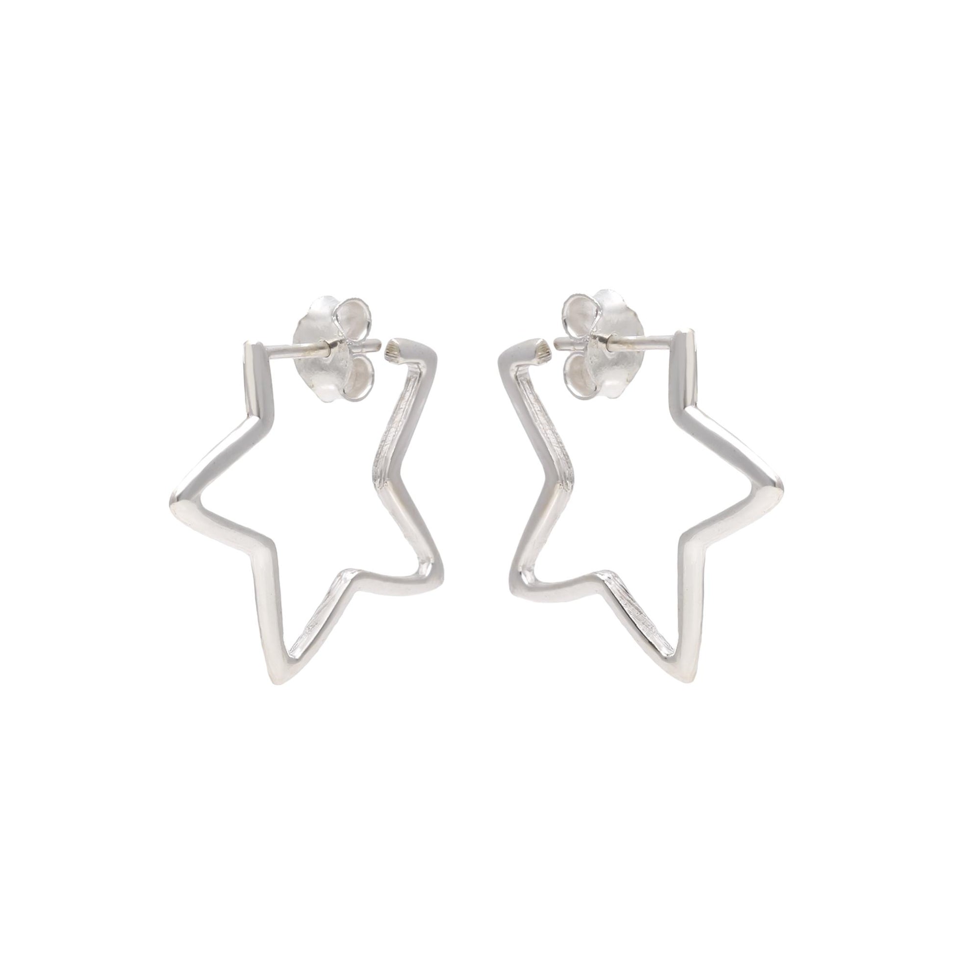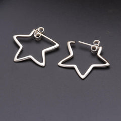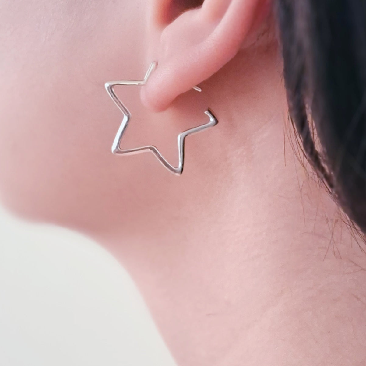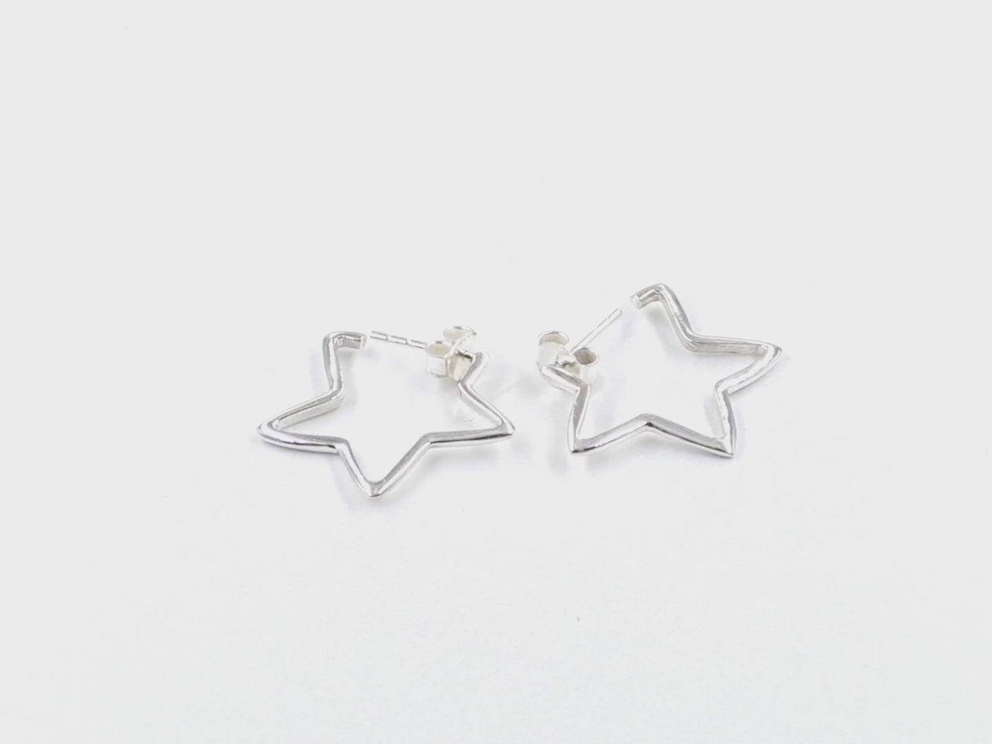 Sterling silver star hoops for a cool and chic style.These everyday 19mm hoops are perfect for a all day look. They make for a sleek and trendy style.92.5 sterling silver stamp on each piece gives the product a stamp of quality.