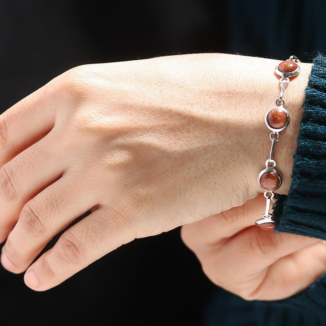his Radiant synthetic sunstone sterling silver bracelet.A beautifully crafted to brighten your day. This bracelet adds great charm to style and grace92.5 sterling silver stamp on each piece gives the product a stamp of quality..