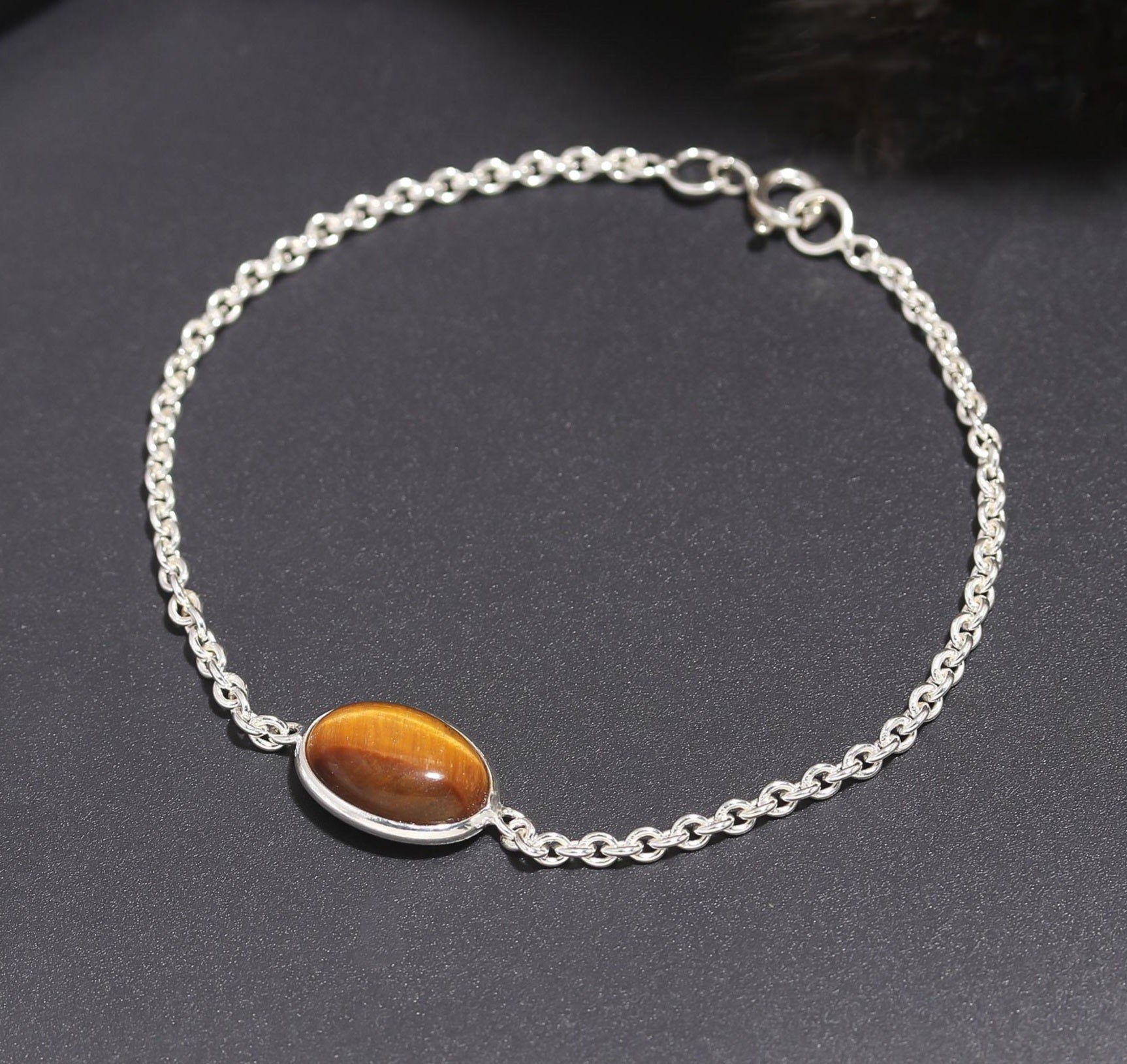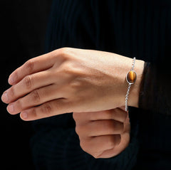 An evergreen tiger eye sterling silver bracelet. Pair it for an effortless style statement.92.5 sterling silver stamp on each piece gives the product a stamp of quality.