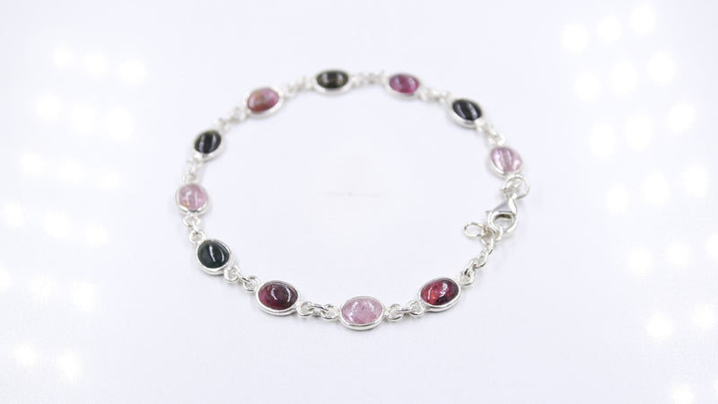 An elegant multi colored tourmaline sterling silver bracelet. Its a must have fashion accessory, adding elegant and distintive style92.5 sterling silver stamp on each piece gives the product a stamp of quality.